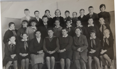 На снимке: наш 7 Б класс, четвертая слева в верхнем ряду я, автор этой статьи.